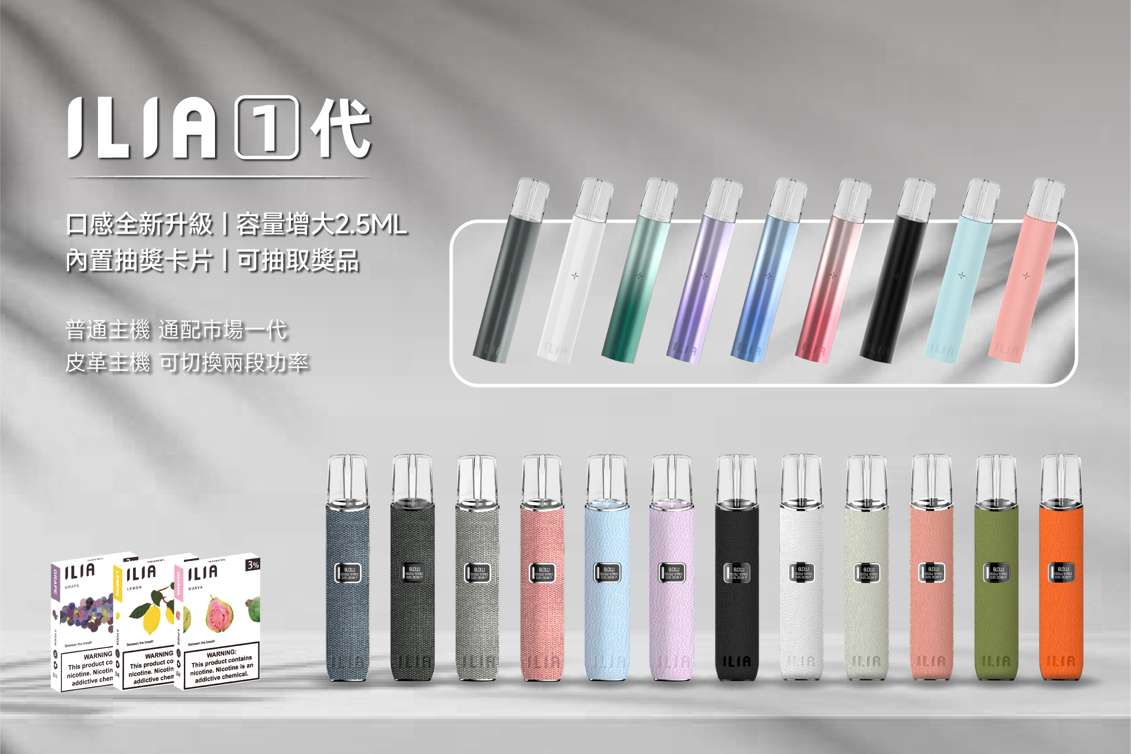 產品型號:ILIA哐啷一代皮革布紋主機 電池容量:650mAh 輸出功率:8W/10W 充電方式:Type C線 適配煙彈:適配一代煙彈
