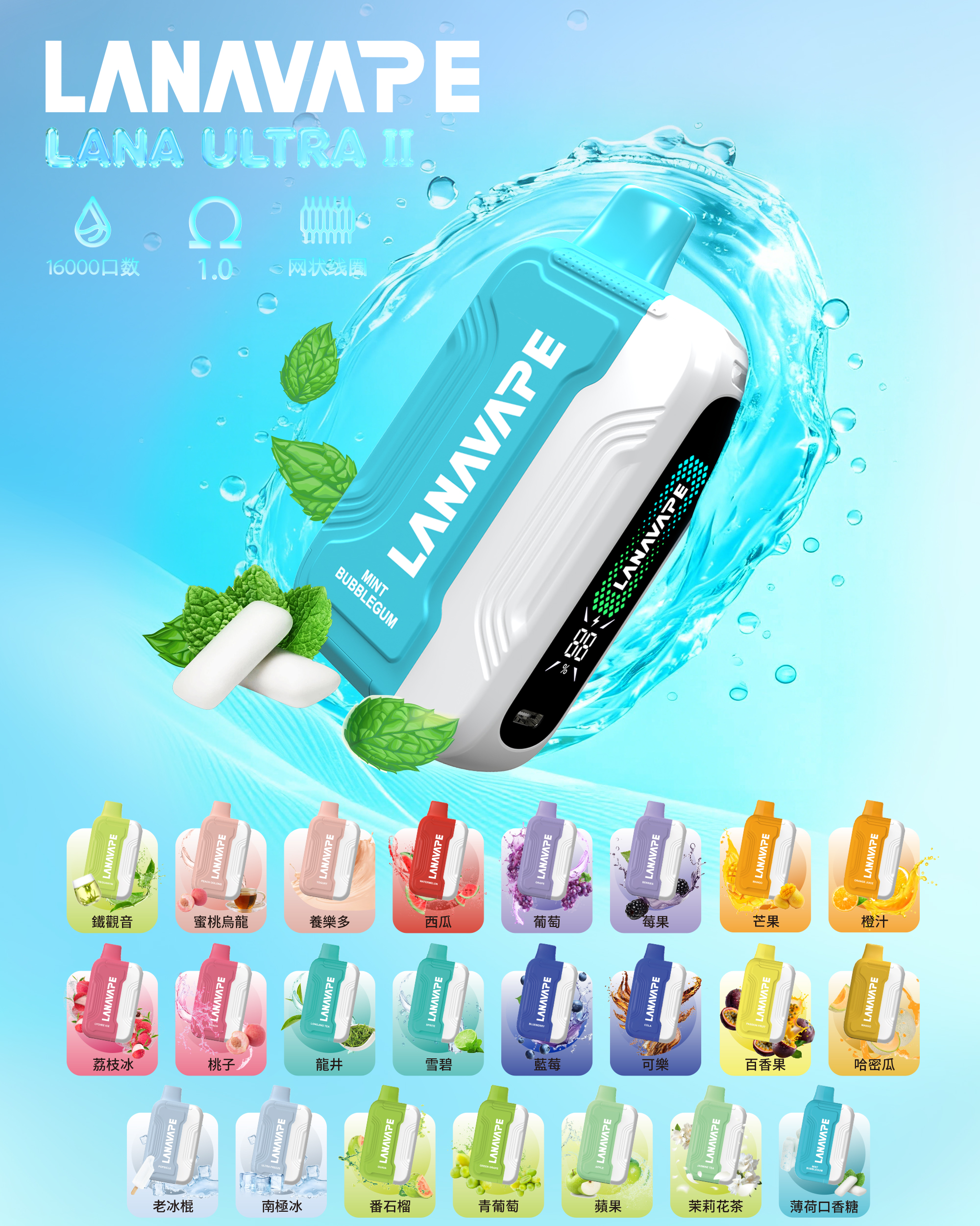 Lana Ultra II 16000口霧化彈【滿3盒送專用主機】 磁吸換彈強勁輸出