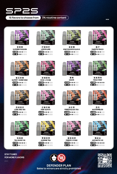 葡萄, 百香果, 南極冰, 鐵觀音, 西瓜, 薄荷, 檸檬青檼, 桃子, 茉莉花茶, 荔枝薄荷